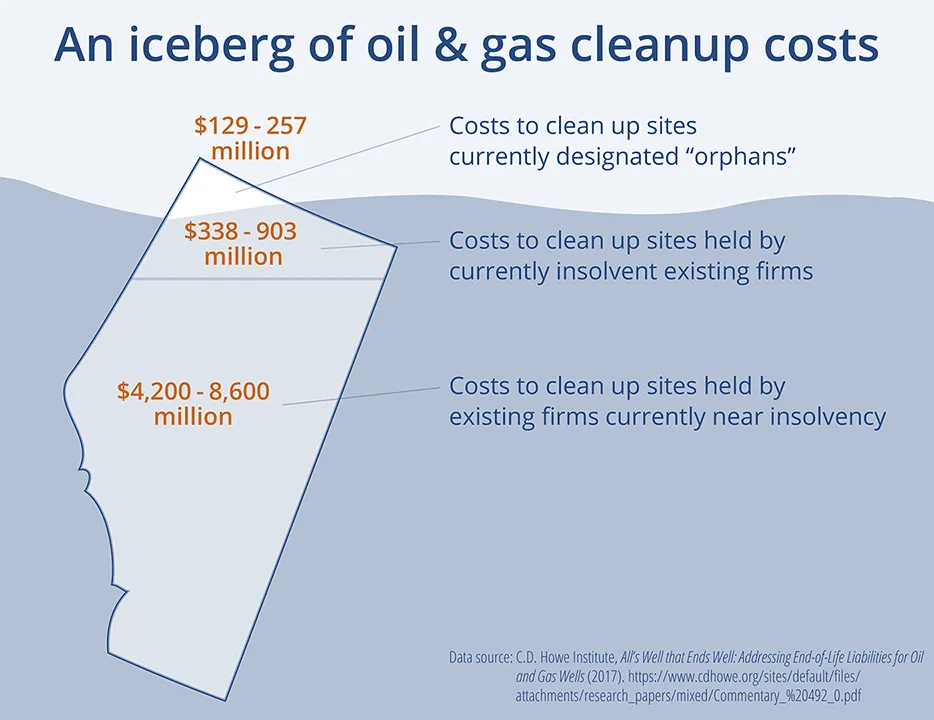 While the orphan well problem has gained traction in the media and government in recent years, there is a less known and much bigger oil and gas liability crisis is lurking just “below the surface.” According to the CD Howe Institute, of 450,000 conventional (i.e. non-oilsands) oil and gas wells registered in the province, a third ( over 155,000) are no longer producing and have yet to be fully cleaned up.