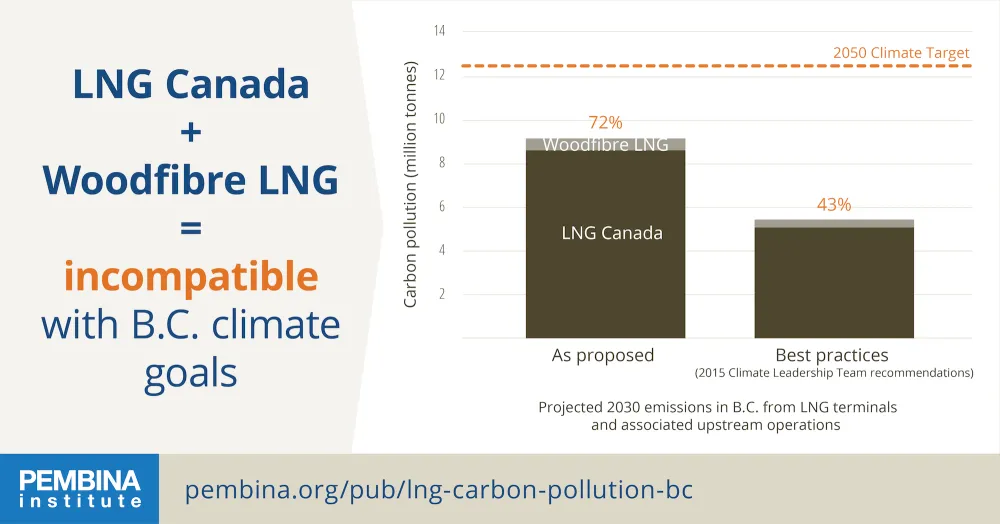 The premier is now promising LNG development can proceed and we can meet our 2030 and 2050 climate targets. Questions remain regarding how the carbon pollution associated with proposed LNG projects will fit within the province's carbon budget. Major LNG development would require significant emissions reductions in the gas-supply chain, and an increase in the scale of emissions reductions needed in other sectors.