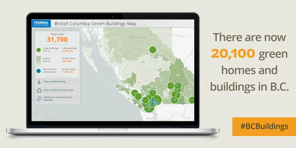We’ve been tracking the growth in green building construction. First released in 2015, the Pembina Institute’s British Columbia Green Buildings Map has just been updated with all-new data for the past two years. The results show that the green building sector continues to be an important employer and source of economic activity in B.C. Let’s take a deeper look at the numbers.